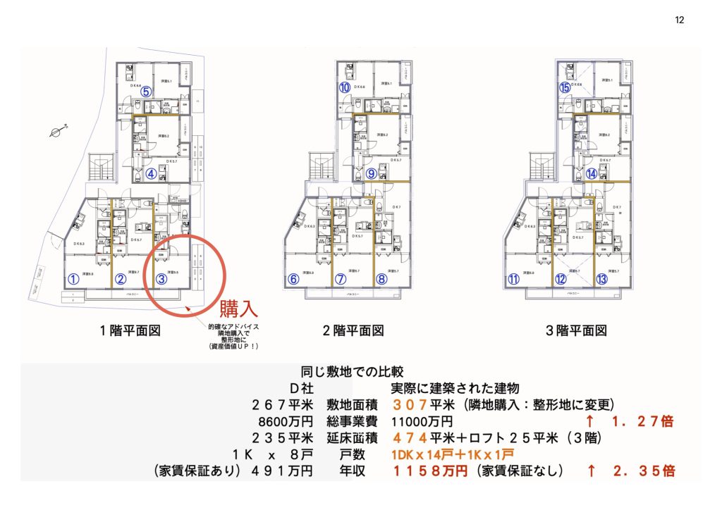 家賃収入は当初大手デベが提案した数字から2.35倍にまでアップ。